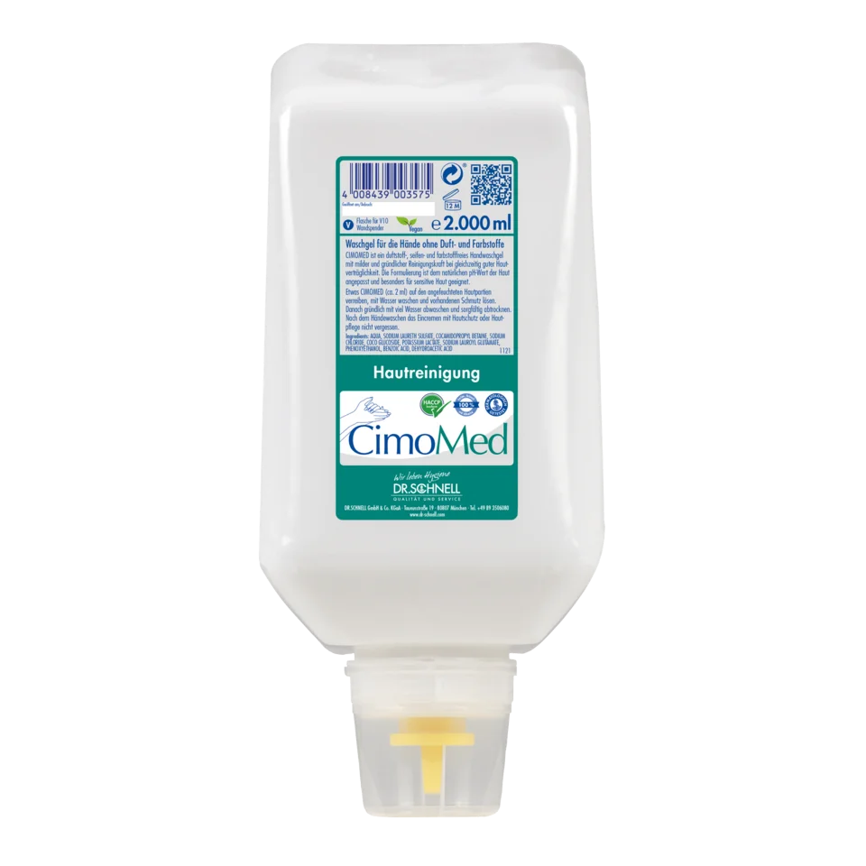 CIMOMED ist ein duftstoff-, seifen- und farbstofffreies Handwaschgel mit milder und gründlicher Reinigungskraft bei gleichzeitig guter Hautverträglichkeit. Die Formulierung ist dem natürlichen pH-Wert der Haut angepasst und besonders für sensitive Haut geeignet.