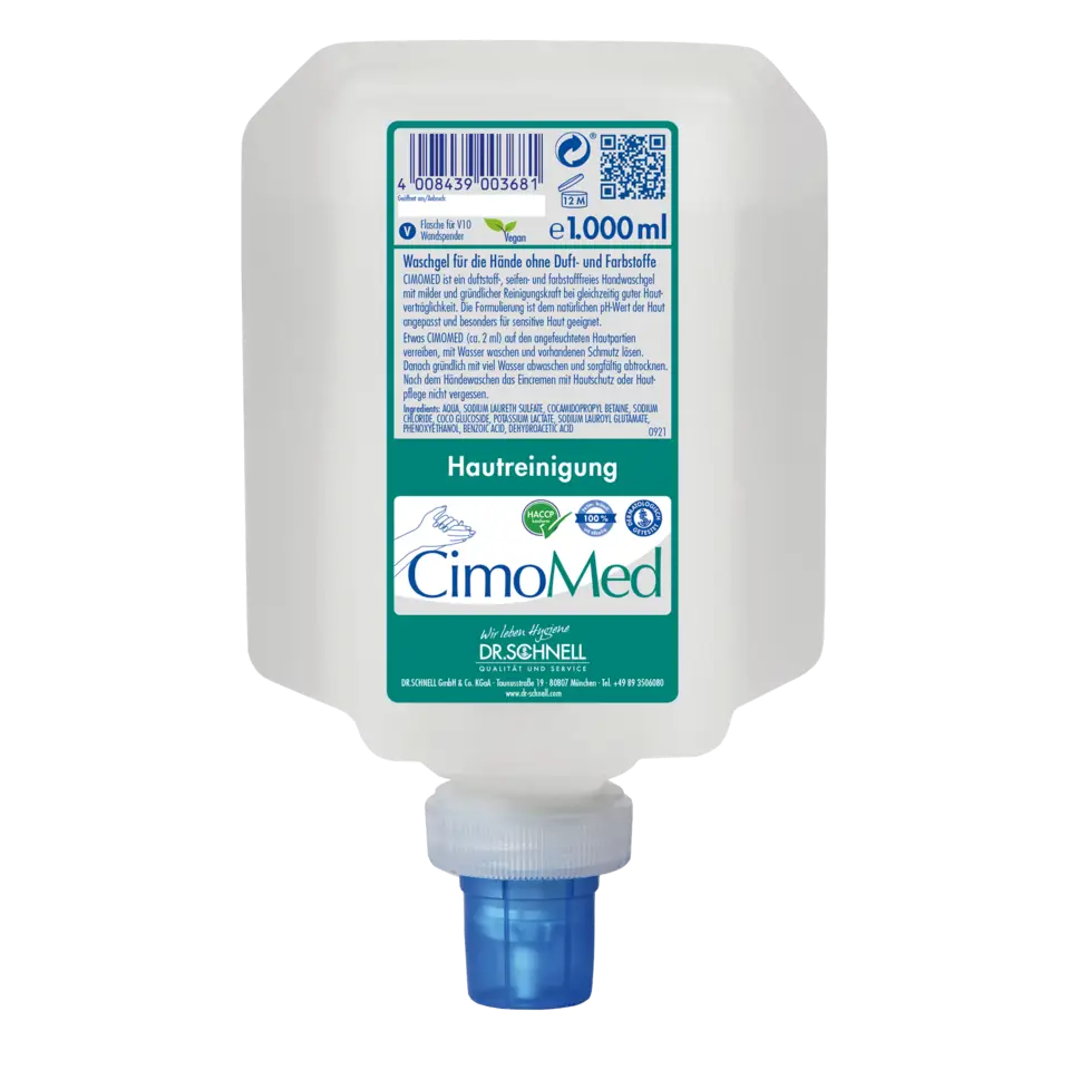 CIMOMED ist ein duftstoff-, seifen- und farbstofffreies Handwaschgel mit milder und gründlicher Reinigungskraft bei gleichzeitig guter Hautverträglichkeit. Die Formulierung ist dem natürlichen pH-Wert der Haut angepasst und besonders für sensitive Haut geeignet.