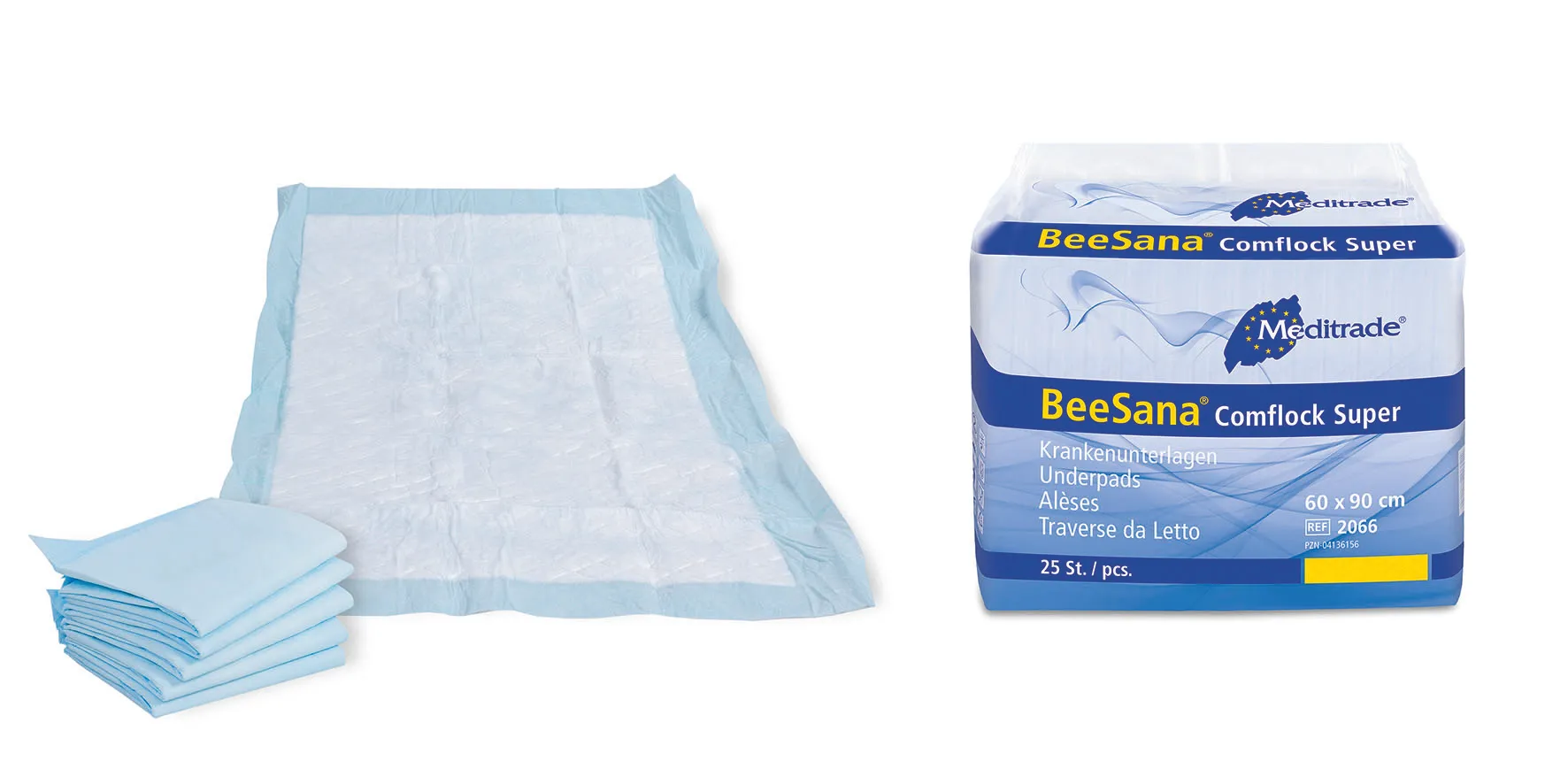 Krankenunterlage mit Saugkörper aus Zellstoffflocken für eine rasche und vollflächige Feuchtigkeitsaufnahme. Das Trockenvlies mit rutschfester Außenfolie gewährt eine bedarfsgerechte und effiziente Anwendung.