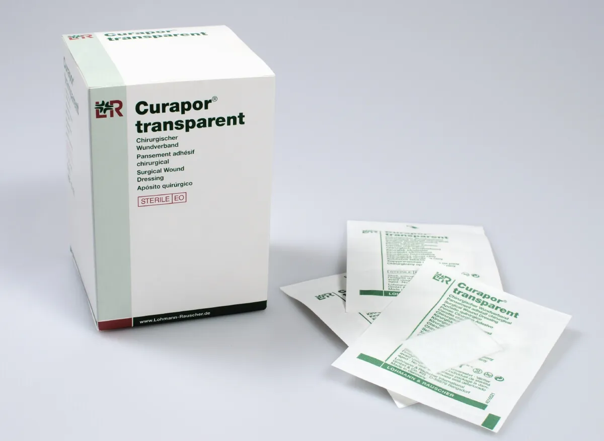 Beim transparenten Wundverband Curapor handelt es sich um einen chirurgischen Wundverband aus wasserdichter und atmungsaktiver Folie.