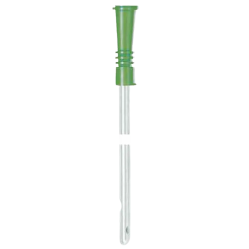 Mit Trichter, farblich nach Charr.-Größen codiert, besonders weiche, satinierte Oberfläche = geringstes Trauma der Schleimhäute, atraumatische, seitliche Augen mit Lumen der Charr.-Größe entsprechend, weiche abgerundete Spitze des Katheters.