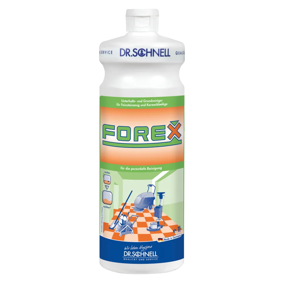 Maschinelle Grundreinigung_x000D_FOREX 10 %ig mit kaltem, klarem Wasser verdünnen (1 Teil FOREX auf 9 Teile Wasser). Bodenbelag inkl. Fugenmaterial mit reichlich kaltem, klarem Wasser vorwässern. Anschließend reichlich Reinigerlösung auf den Boden ausbringen (500 – 650 ml Anwendungslösung/m²). Einwirkzeit ca. 5 Minuten. Während der Einwirkzeit Flotte manuell oder maschinell in Bewegung halten. Nach Einwirkzeit mit Einscheibenmaschine und geeigneter Padscheibe/Bürste Belag vollflächig abfahren, bearbeitete Bodenfläche gründlich absaugen. Bodenbelag gründlich (ggf. mehrmals) mit klarem Wasser nachwaschen und erneut absaugen. Angelöste Rückstände mit klarem Wasser im Wischverfahren von der Fläche entfernen – bei Bedarf Fläche spülen und mit Wassersauger aufnehmen._x000D_Unterhaltsreinigung_x000D_0,25 – 5,0 % Anwendungslösung ansetzen. Mittels Scheuersaugmaschine oder manuell im 2-stufigen Nasswischverfahren zur Anwendung bringen.