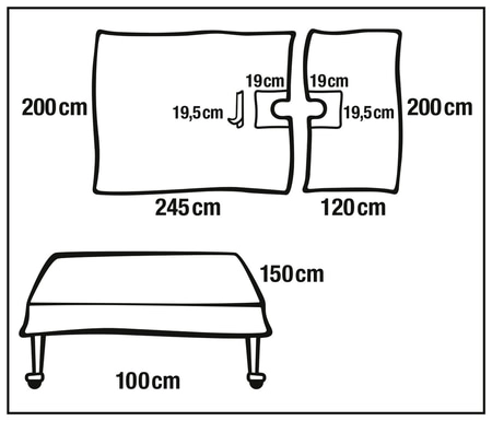 •1 Protect Fuß-Tuch, selbstklebend, 245x200 cm, einteilig und variabel, Schlitzmaße 19x19;5 cm mit Klebefläche, Klettverschluss