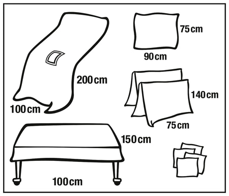 Das Set enthält ein Perineal-Tuch mit einem rautenförmigen Lochausschnitt von 8x12 cm.