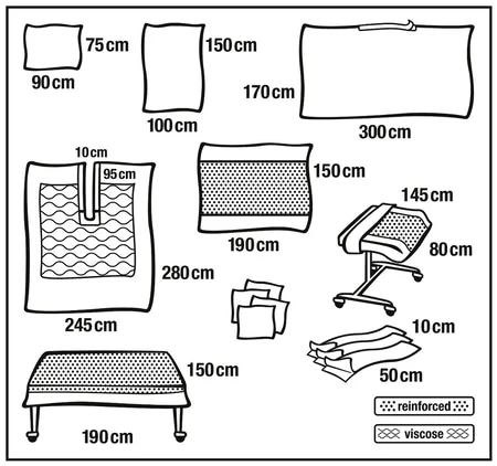Das Set enthält alle zur Abdeckung des Patienten erforderlichen Komponenten.