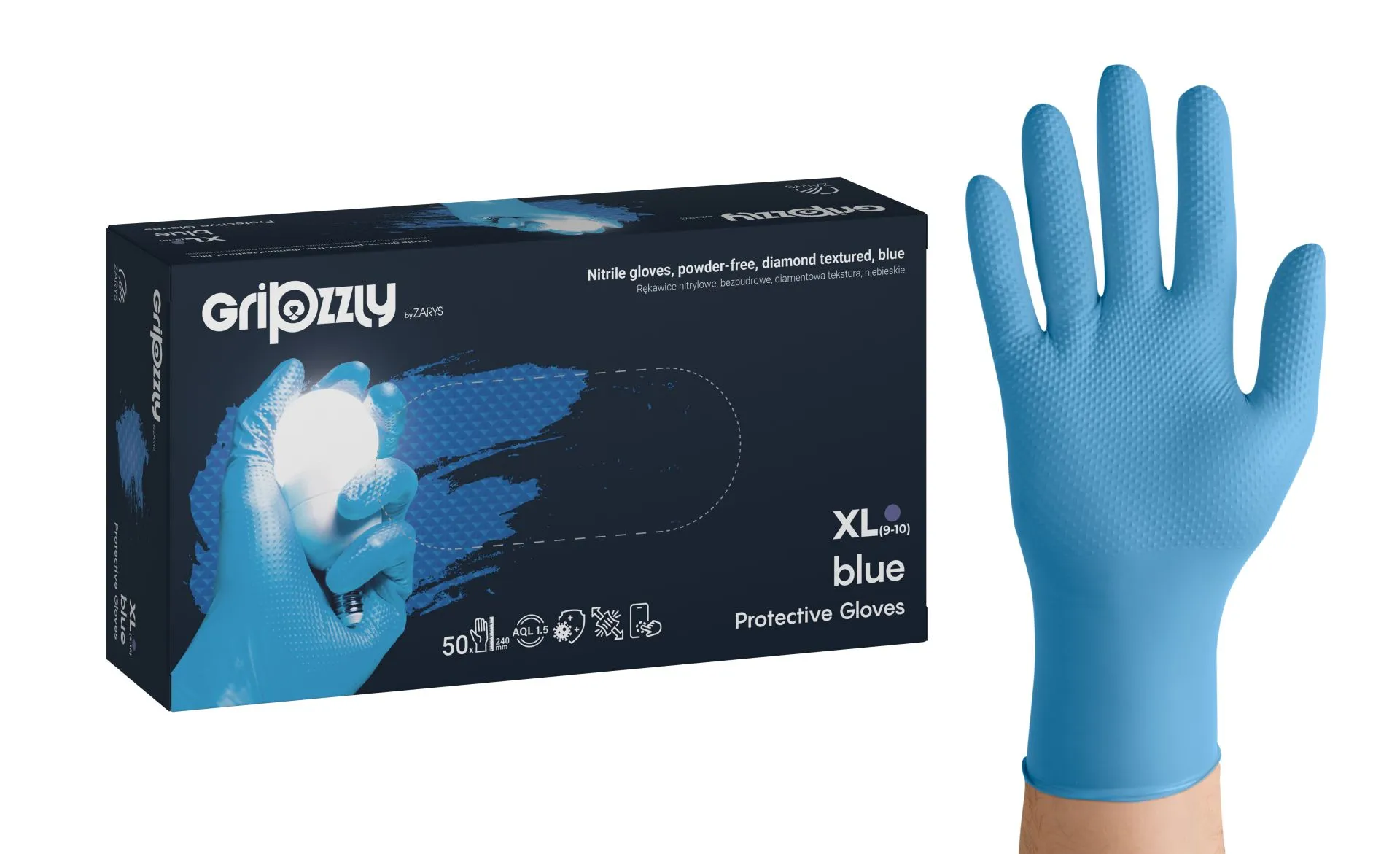 Produktinformationen "Gripzzly Nitrile gloves, powder-free, diamond tex. blue, XL"