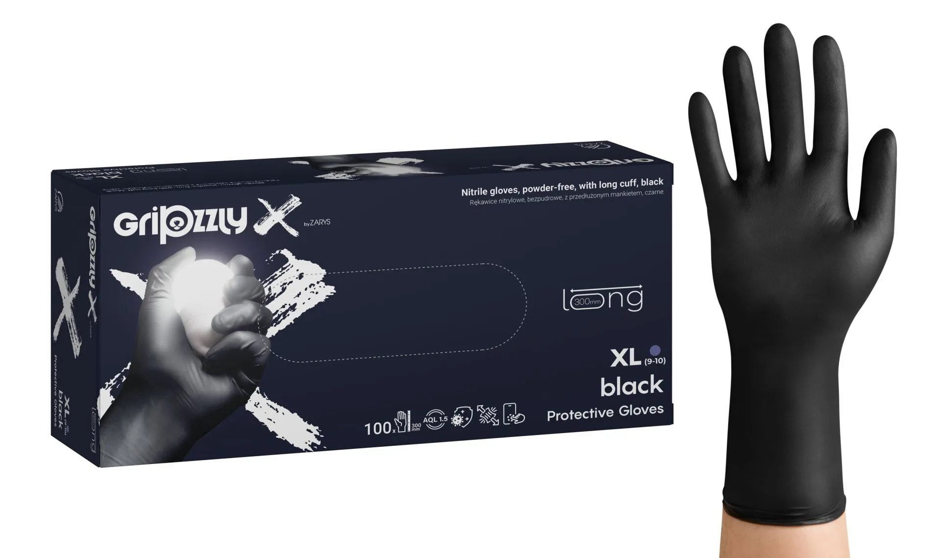 Produktinformationen "Gripzzly_X Nitrile gloves, pf, extended cuff, black, XL"
