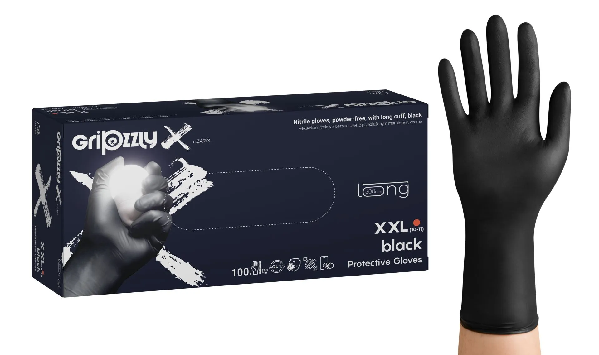 Produktinformationen "Gripzzly_X Nitrile gloves, pf, extended cuff, black, XXL"