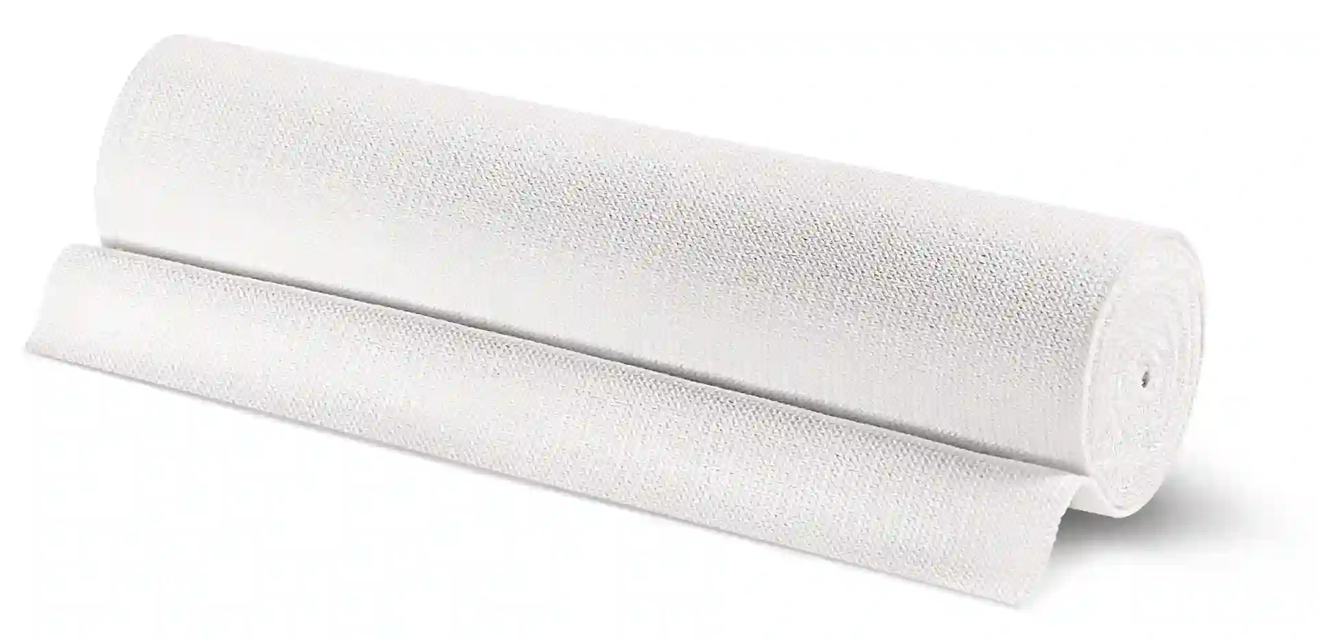 Klassische Kurzzugbinde aus Baumwolle E DIN 61632-IB-S, mit Schlingenkanten, mit textiler Elastizität von ca. 90 %, hoher Arbeitsdruck bei leichtem Ruhedruck, kann auch in Ruhelage getragen werden, waschbar bei 95 °C und sterilisierbar (Dampf A bei 134 °C), durch Waschen der Binden wird die beim Tragen verlorene Elastizität wieder hergestellt.