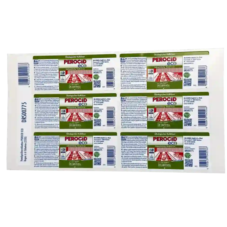 Selbstklebende PEROCID ECO Handsprüher Etiketten, die zum eigenständigen Um- und Neuetikettieren der Handsprüher verwendet werden können.