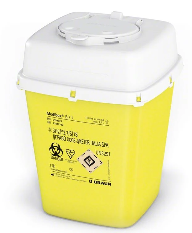 - Große Öffnung für die Entsorgung verschiedener scharfer und spitzer medizinischer Instrumente