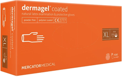 dermagel® coated – universelle Handschuhe aus Naturlatex. Eine Innenbeschichtung aus Polymer erleichtert das Anziehen, auch auf feuchte Hände.