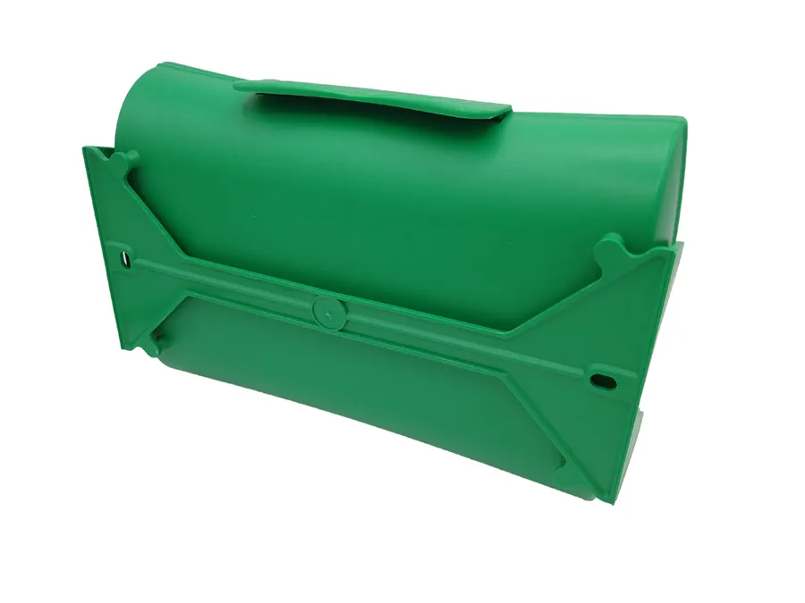 Verbandkasten aus 85% recyceltem Kunststoff mit integrierter Wandhalterung.