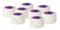 Kohäsive, elastische Fixierbinden mit zweifachem Hafteffekt durch gekreppte Gewebestruktur und mikropunktuelle Imprägnierung mit einem Synthetik-Polymer, Dehnbarkeit ca. 85 %, geringer Materialverbrauch durch starke Eigenhaftung, bereits wenige Touren ergeben eine sichere, dauerhafte Fixierung, dabei kein Verkleben mit Haut, Haaren oder Kleidung, luftdurchlässig, hautfreundlich und geruchsneutral, da acrylat- und chlorfrei.