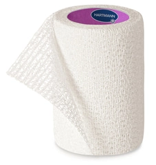 Kohäsive, elastische Fixierbinden mit zweifachem Hafteffekt durch gekreppte Gewebestruktur und mikropunktuelle Imprägnierung mit einem Synthetik-Polymer, Dehnbarkeit ca. 85 %, geringer Materialverbrauch durch starke Eigenhaftung, bereits wenige Touren ergeben eine sichere, dauerhafte Fixierung, dabei kein Verkleben mit Haut, Haaren oder Kleidung, luftdurchlässig, hautfreundlich und geruchsneutral, da acrylat- und chlorfrei.