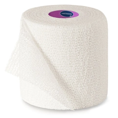Kohäsive, elastische Fixierbinden mit zweifachem Hafteffekt durch gekreppte Gewebestruktur und mikropunktuelle Imprägnierung mit einem Synthetik-Polymer, Dehnbarkeit ca. 85 %, geringer Materialverbrauch durch starke Eigenhaftung, bereits wenige Touren ergeben eine sichere, dauerhafte Fixierung, dabei kein Verkleben mit Haut, Haaren oder Kleidung, luftdurchlässig, hautfreundlich und geruchsneutral, da acrylat- und chlorfrei.