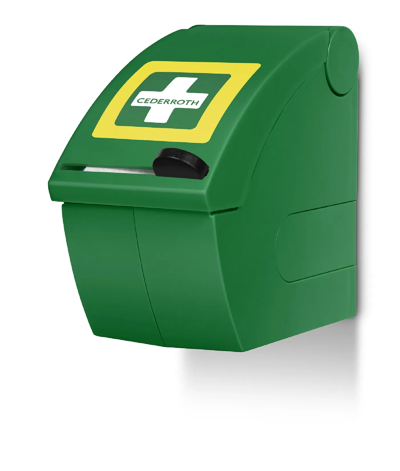 Neuheit! Spender mit Wandhalterung für Soft Foam Bandage 4,5 m x 6 cm. Lieferung bestückt mit Cederroth Soft Foam Bandage Blue, 6 cm x 4,5 m (CED51011010).