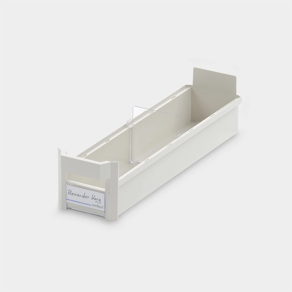 Produktinformationen "Schrankbehälter 10x40 mit Klemmschild und Fachteiler"