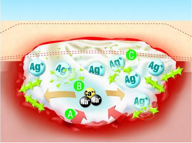 (C) Abtötung der Bakterien im Wundbett durch freigesetzte Silberionen