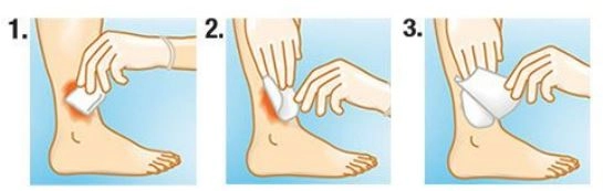 - die Wunde nach üblichem Standard reinigen und anschließend die Wundumgebung mit sterilen Wundkompressen sorgfältig trocken tupfen.