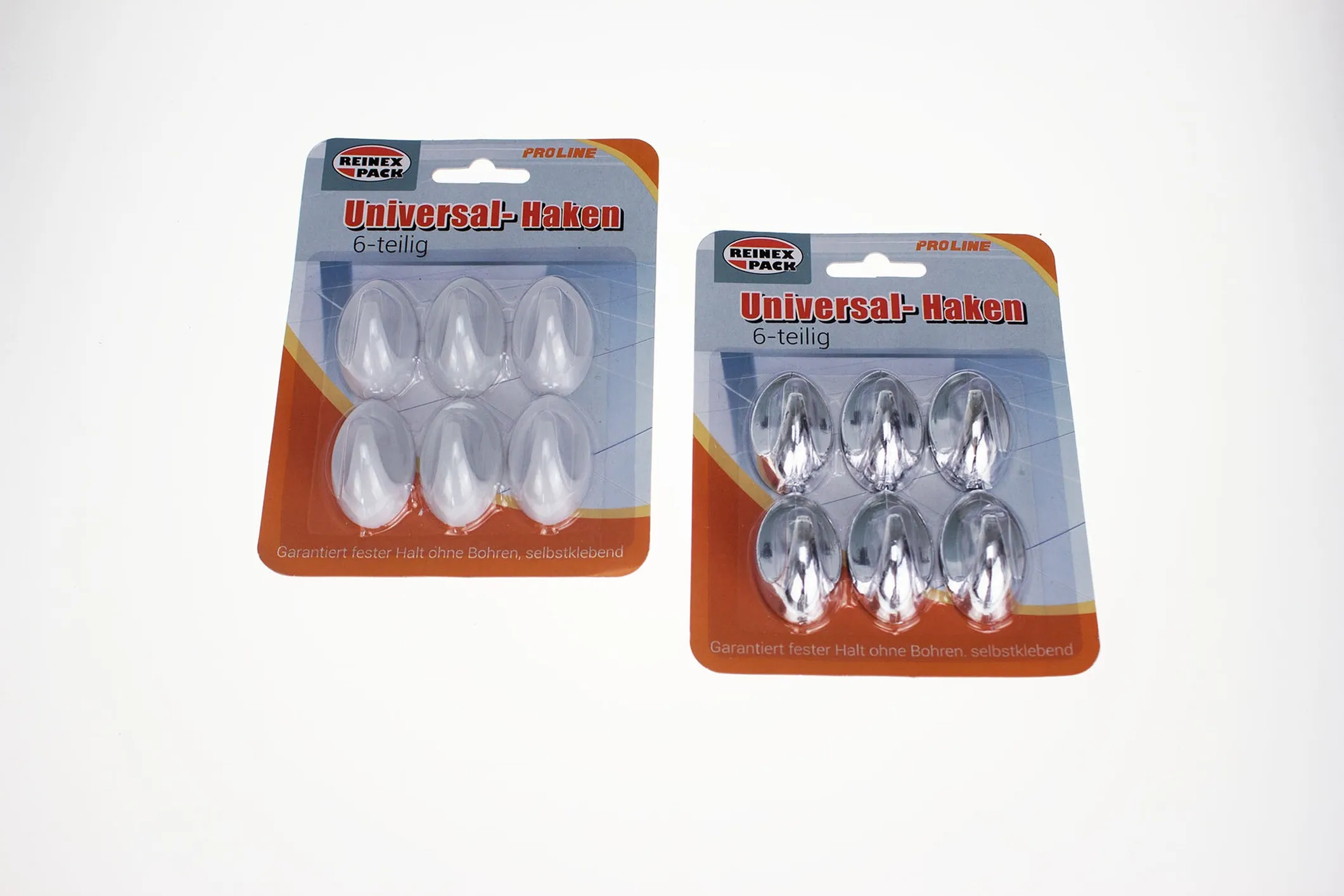 Universalhaken, selbstklebend, 6-tlg, weiß & chrom sortiert