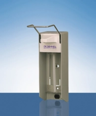 Gehäuse aus Aluminium, Universalpumpe aus Kunststoff, Bügel aus Edelstahl. Der Spender ist für die 500 ml Euroflasche geeignet. Befüllung durch Nachfüllen oder Auswechseln der Flasche.