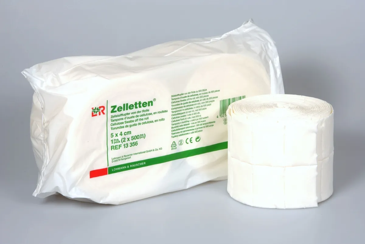 Produktinformationen "Zelletten Zellstofftupfer 5x4cm, 2 Rollen, je 500 Stück"