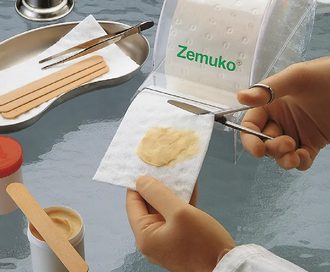 Weiche, wirtschaftliche Universalkompresse, bestehend aus einer feinen Vliesstofflage mit einer Saugschicht aus hochgebleichtem Zellstoff. Der wundfreundliche Vliesstoff und die Sauglage sind durch Punktraster faltenfrei miteinander verbunden. Zemuko Kompressen lassen sich daher randfest und fusselfrei von der Rolle schneiden. Zemuko Kompressen sind auch mit allseitiger Mullumhüllung erhältlich.