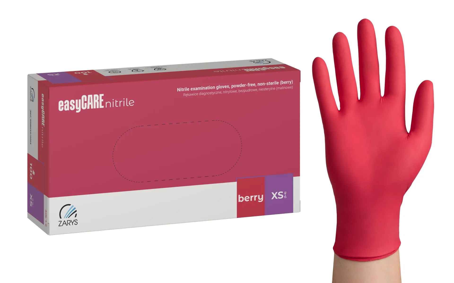 Produktinformationen "easyCARE nitrile exam gloves, powder-free, berry pink, XS"