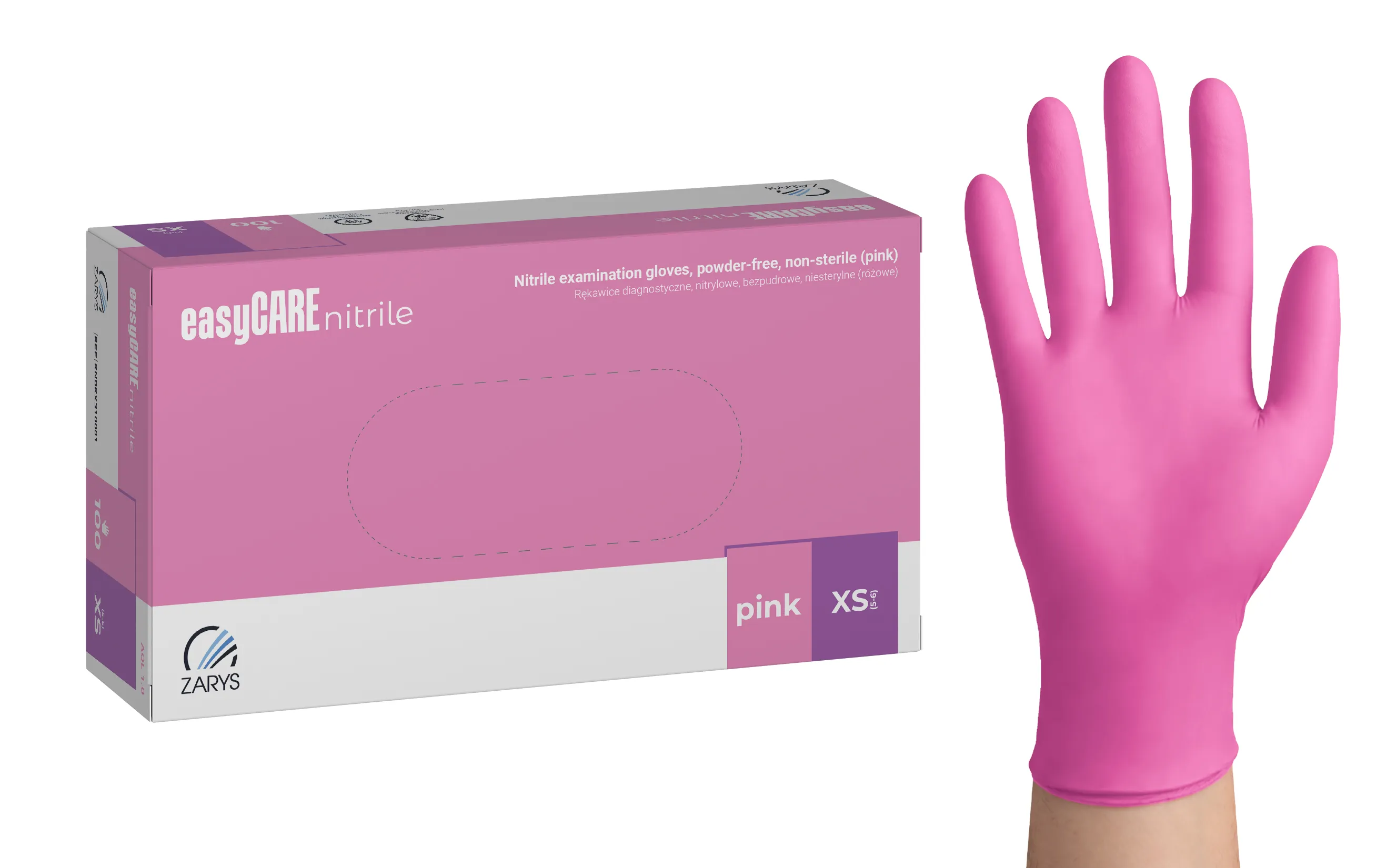 Produktinformationen "easyCARE nitrile exam gloves, powder-free, unsteril pink, XS"