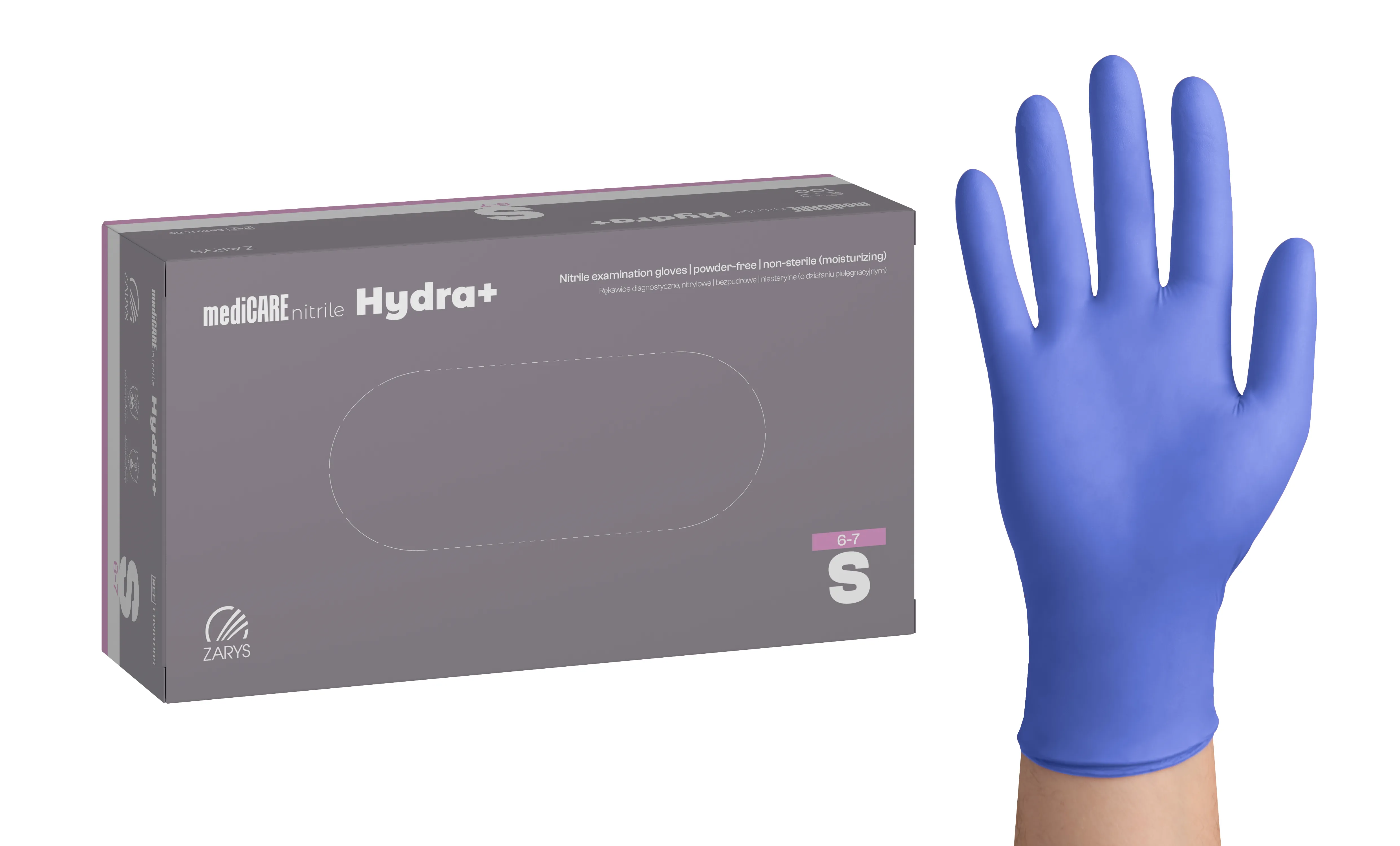 Produktinformationen "mediCARE nitrile Hydra+ moisturizing gloves, violet blue, S"