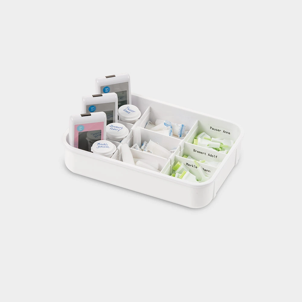 für 3 Blutzucker-Messgeräte und den bewohnerbezogenen Verbrauch von Pen-Kanülen Stechhilfen und Teststreifen Außenmaße: L 253 x B 176 x H 55 mm