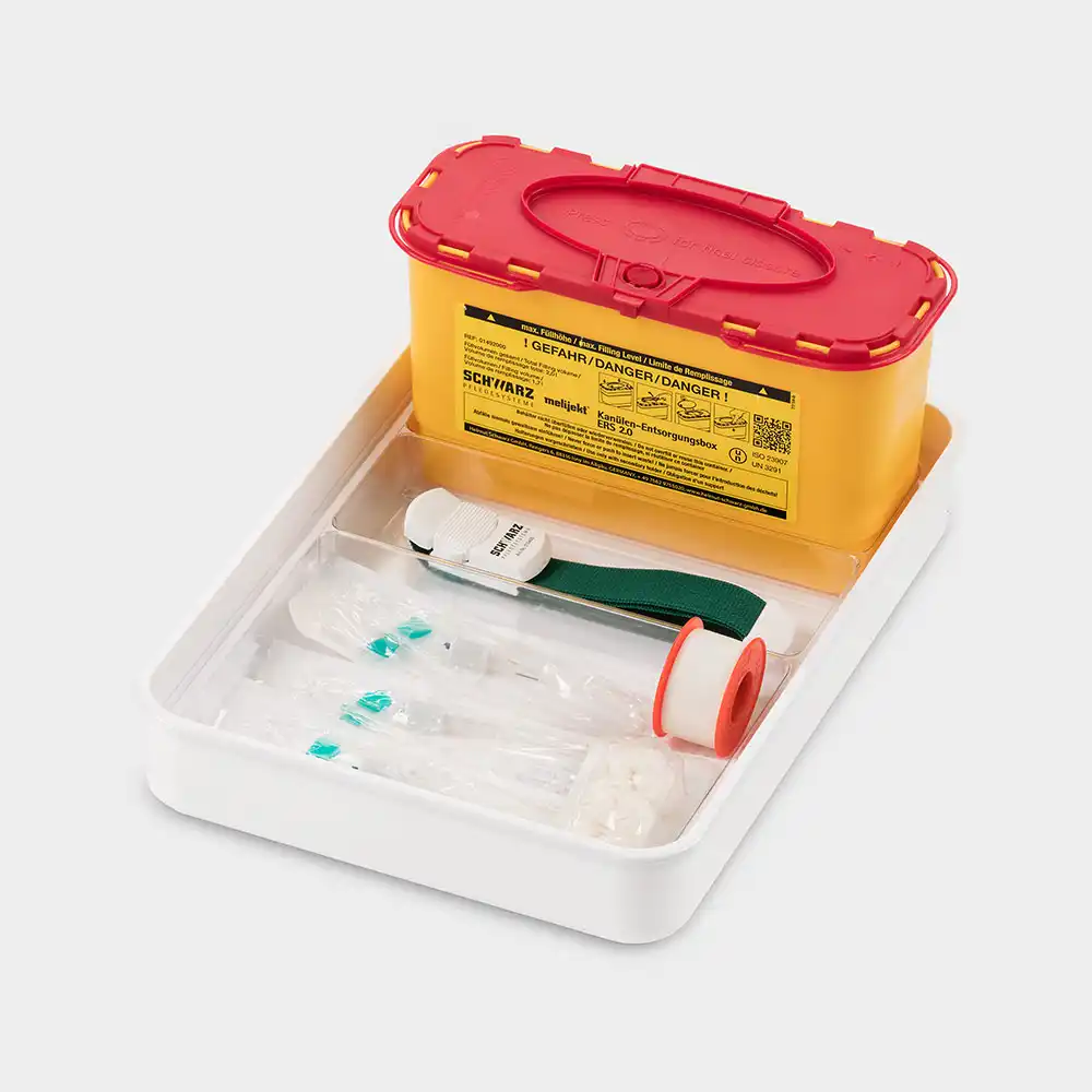mit Tablett-Einsatz und Kanülensammelbox Außenmaße: L 353 x B 253 x H 55 mm