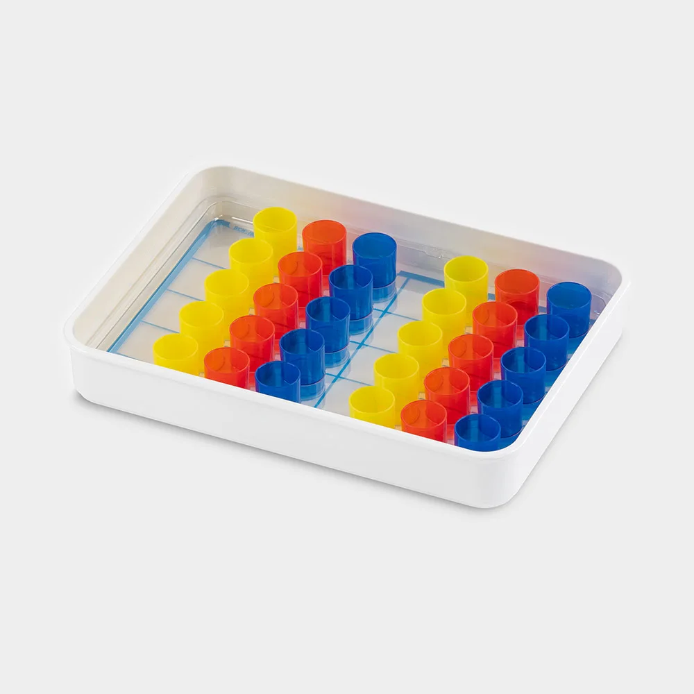 Tagestablett für 30 Becher Tabletten oder Tropfen mit Tabletteinsatz Beschriftungsfolie und Folienstift Maße: L 353 x B 253 x H 55 mm
