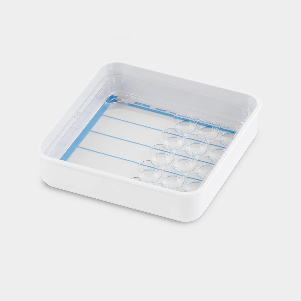 Tagestablett für 15 Becher Tabletten oder Tropfen mit Tablett-Einsatz Beschriftungsfolie und Folienstift Maße: L 253 x B 253 x H 55 mm