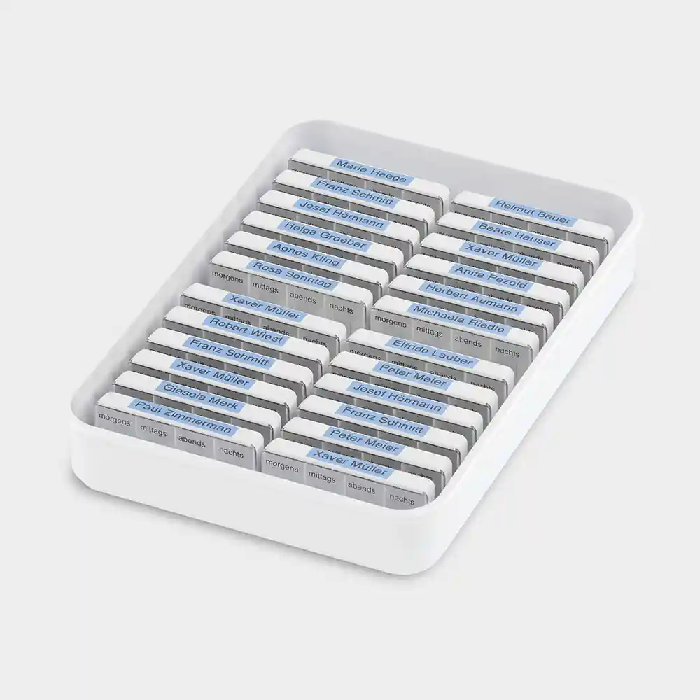 für 24 MEDI Tagesdosierer mit 2 Tablett-Einsätzen Maße: L 353 x B 253 x H 55 mm