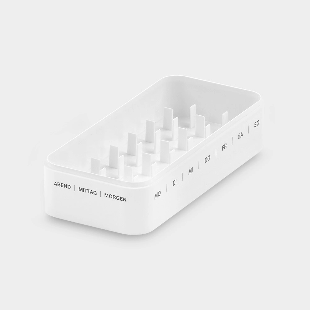 für 7 Tage Morgen / Mittag / Abend stapelbar passend für melipul Mehrwerg-Medikamenten-Becher aus hochwertiger Kunststoff hygienegerecht spülmaschinengeeignet bis 93 C Abmessungen: L 248 x B 110 x H 52 mm